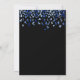 Modernes, elegantes und einladendes Hotel. Ein schwarzer Hintergrund mit blauen Konfetti. Personalisieren und fügen Sie einen Namen und Details. Weißer Text.