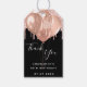 Ein schicker schwarzer Hintergrund auf der Vorderseite. Mit Imitaten Rose Gold Glitzer Tropfen und Ballons als Dekoration. Auf der Vorderseite ein handgeschriebenes Stil Skript und den Text: Danke. Personalisieren und fügen Sie einen Namen/Text und ein Datum ein. Zurück: Rose goldener Hintergrund und Platz für Sie, um von Hand zu schreiben.