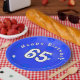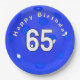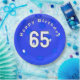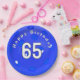 Nah-up eines neonblauen Pickleballs für einen 65. Geburtstag. Alle Texte können geändert oder gelöscht werden.