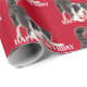 Spielerischer Border Collie Hund auf rotem Hintergrund mit weißem Happy Birthday Text. Die Hintergrundfarbe kann geändert werden.