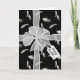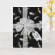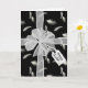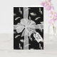 Weißer, schlichter Bogen mit Geschenkanhänger auf weißem Federmuster mit schwarzem Hintergrund. Die Hintergrundfarbe kann geändert werden. Text auf dem Geschenktag ist editierbar.