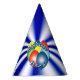 Geburtstagskinder-Text über bunten Ballons und einem blauen wirbelnden Hintergrund.