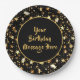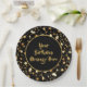 Birthday Brush Script Black Gold Stars personalisi Pappteller