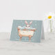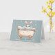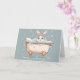 Niedliches weißes Kaninchen in der Badewanne mit zum Geburtstag passenden Blasen. Text ist bearbeitbar.
