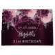 Für einen eleganten 21. Geburtstag (oder jedes Alter). Eine burgundische Hintergrundfarbe. Dekoriert mit Imitaten silberne Konfetti und rosa und bordeauxfarbene Blume. Personalisieren und fügen Sie einen Namen und Alter. Der Name ist mit einem modernen handgeschriebenen Stilskript geschrieben