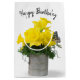 Ein hellgelbes, dicken Blume-Bouquet mit Schmetterling in einem Vintagen Blechbecher auf weißem Hintergrund zum Geburtstag. Text kann bearbeitet oder gelöscht werden.
