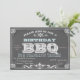 Ein Vintages Retro-Look Geburtstagsgeschenk GRILLEN (Bar b que) schimmernd Chalkboard Vorlage mit Zierdesigns und Blume.