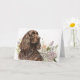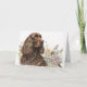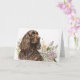 Wasserfarben-Design eines niedlichen Schokoladenkopfhundes spaniel Hundes in einem Frühlingsblumengarten für jedermann Geburtstag.