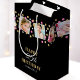 Erstellen Sie eine stilvolle Foto Collage Geschenktasche mit acht Lieblings-Fotos! Personalisieren Sie die Vorlage mit dem Namen des Empfängers und dem Geburtstagsalter. Ein elegantes Design mit Konfetti, Sternen und quadratischen Fotografien, perfekt für Familie und Freunde. Bedruckte Farben: Rosa, Schwarz, Weiß und Imitat, goldene Elemente.