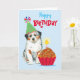 Herzlichen Glückwunsch zum Geburtstag mit diesem niedlichen Design, das ein lächelndes, Party tragendes australisches Shepherd Welpe mit einem Geburtstagskupcake enthält. Text kann leicht geändert werden; klicken Sie einfach auf Anpassen.