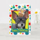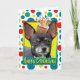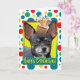 Feiern Sie einen Geburtstag mit dieser skurrilen Chihuahua-Hundegrußkarte. Mit einem Kuchen auf dem Kopf wird dieses Design sicher ein Lächeln und ein Giggles bringen! BTW, Dieses Design hat mehrere Versionen, mit verschiedenen Hintergrundfarben. Es gibt auch eine Einladung zu einer Party-Version.