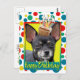 Feiern Sie einen Geburtstag mit dieser skurrilen Chihuahua-Hundegrußkarte. Mit einem Kuchen auf dem Kopf wird dieses Design sicher ein Lächeln und ein Giggles bringen! BTW, Dieses Design hat mehrere Versionen, mit verschiedenen Hintergrundfarben. Es gibt auch eine Einladung zu einer Party-Version.