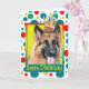 Feiern Sie einen Geburtstag mit dieser skurrilen Grußkarte des deutschen Schäferhundes. Mit einem Kuchen auf dem Kopf wird dieses Design sicher ein Lächeln und ein Giggles bringen! BTW, Dieses Design hat mehrere Versionen, mit verschiedenen Hintergrundfarben. Es gibt auch eine Einladung zu einer Party-Version.
