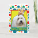 Celebrate hat birthday with this whimsical watte watty von Tulear Dog Greeting Card. With a cupcake balanced on it's head, this design is sure to bring a smile and giggles! BTW, This design has several versionen with different background colors. There is also an einladung to a Party version.