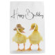 Niedliches, schwindeliges gelbes Entenpaar auf weißem Hintergrund. Die Hintergrundfarbe kann geändert werden. Text ist bearbeitbar.