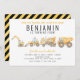 Einfache Konstruktion Geburtstagsschlaufe Einladung für die Geburtstagsparty Ihres Kindes! Mit handgezeichnet Bauwagen und einem schwarz-gelben Rücken-Design. Baueinladung, Baueinladung, Baueinladung, Baueinladung, Baueinladung, Party-Einladung, Party-Dump, Verkehrsstopp und Nah die Straße, Bull Dozer, Digger. Einfach zu personalisieren!