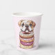 Niedliche Abbildung der englischen Bulldogs verkleidet und bereit für eine Geburtstagsfeier.