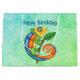 Diese Geschenktüte ist in Blau und Grün gehalten, mit einer lächelnden Fantasiegeidechse mit großen Augen, die in leuchtenden Farben wie blau, grün, gelb und orange gehalten werden. Er hält einen Stock mit einem grünen Blatt vorne und hinten. Passen Sie den Geburtstagstext von Happy mit der Vorlage an.