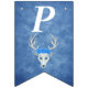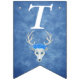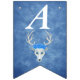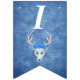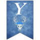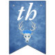 Diese Fahne geformt bunting Happy Birthday Banner ist eine Mischung aus scheußlicher Blues mit einem fantasievollen weißen Hirschkopf mit Fantasien und drei hübschen blauen Rose auf dem Kopf. Passen Sie das Geburtstagsjahr mit den Vorlagen an.