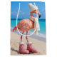 Birthday Flamingo Wearing Winter Scarf and Hat Mittlere Geschenktüte