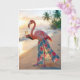 A vibrant flamingo, elegantly holding a glass of champagne, adorned in a stunning tropical printed skirt, gracefully standing on a picturesque beach