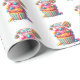 Wrapping paper is shown in a cute Happy Birthday candy treats cupcake print.