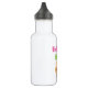Eine personalisierte Wasserflasche, die das Geburtstagsmädchen und Ihren personalisierten Namen und Ihr Alter angibt. Entworfen mit einer niedlichen Illustration eines lächelnden Löwen, der einen Party-Hut trägt und eines verschwommenen Schafes mit Geburtstagsballons.