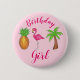 Birthday Girl Pink Flamingo Palm Tree Ananas Button