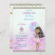 Herzliche Geburtstagsprinzessin mit Kuchen, Ballons & Kuchen-Design in Lavendeltönen, lila, pink & türkis.