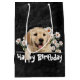 Birthday Golden Retriever auf schwarzem Leder Mittlere Geschenktüte
