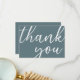 Ein schiefer grauer Hintergrund. Auf der Vorderseite große Hand Schrift mit dem Text: Danke. Zurück: Vorlage für Ihre Dankeschön Notiz und Name/Namen.