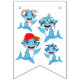 Blaue Haie zum Geburtstag, blaue und weiße Schattierungen, bunte Fahnen