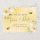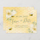 Eine Save the Date Karte für eine 50. Sommergeburtsfeier. Gelber, weißer Hintergrund mit Wabenmuster. Die Blume, der Hibiskus und die Hummeln sind mit hellgelben, cremefarbenen tropischen Blumen geschmückt. Vorlagen für Datum und Name/Alter 50. Grüne, graue Buchstaben. Der Text: Save the Date ist mit einem großen angesagten, handgeschriebenen Stilskript geschrieben. Tipp: Wenn Sie es nicht so gewollt haben, dass es wie eine Postkarte aussieht, klicken Sie auf Anpassen, gehen Sie auf die Rückseite und entfernen Sie den Trenner und posten Sie die Briefmarke.