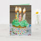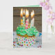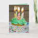 Viele gestreifte Geburtstagskandeln in grünem Eis auf Kuchen mit bunten Sprinklen zum Geburtstag