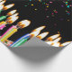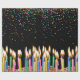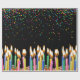 Nahen von vielen brennenden Geburtstagskandalen auf schwarz mit bunten Konfetti