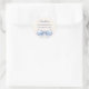 A soft ivory background color. Decorated with a large light blue colored bow. Personalize and add the name and date.