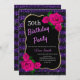 Eleganter Glitzer mit lila und schwarzen Streifen und rosa Rosen Geburtstagsfeier für Frauen jeden Alters. Das Alter kann für jedes Alter geändert werden. Text kann auf alles geändert werden, was zu Ihrer Veranstaltung passt. Schriftart, Schriftart und Text sind vollständig anpassbar! Papierform und -typ können an Ihr Budget und Ihren Geschmack angepasst werden!