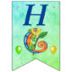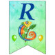 Diese Fahne geformt bunting Happy Birthday Banner ist eine Mischung aus Blau und Grün mit einem Cartoon Happy Eidechse in lebhaften Farben von blau, gelb, grün und orange halten einen Stock mit einem Blatt mit grünen und gelben Ballons. Passen Sie das Geburtstagsjahr mit den Vorlagen an.