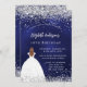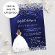 Eine moderne, stilvolle und glamouröse Einladung für eine 18. Geburtstagsfeier (oder jedes Alter). Ein marineblauer Hintergrund mit Imitaten Glitzer, Glitzern, ein Mädchen mit einem Kugelkrug. Die blaue Farbe ist ungleichmäßig. Der Name ist mit einem modernen handgeschriebenen Stilskript geschrieben. Personalisieren Sie Ihre Party-Daten und fügen Sie sie hinzu.