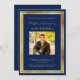 Eine elegante, moderne, einfache Geburtstagseinladung. Marineblau mit vergoldeten Imitaten dekoriert. Personalisieren und fügen Sie einen Namen und Details des Fotos hinzu. Goldener Text.