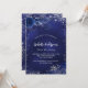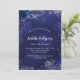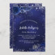 Marineblau, mit Imitaten verziert, silberner Glitzer, Glitzern und blauen Blumen. Die blaue Farbe ist ungleichmäßig. Personalisieren und fügen Sie einen Namen und Party-Details hinzu.