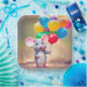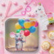 Niedliche graue Maus mit farbenprächtigem Geburtstagsballon