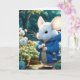 Niedliche weiße Maus zum Geburtstag in einem Garten. Text ist bearbeitbar.