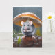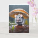 Niedliche graue Maus bleibe trocken unter einem Pilz im Regen. Text ist bearbeitbar.