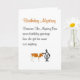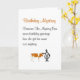 Eine lustige Geburtstagskarte, die ein schlechtes Gedicht und eine schlechte Illustration enthält, über Francine The Mystery Cow, die Geburtstagsgrüße schickt (und das Geheimnis ihres Namens). Unser Charakter, Tillie, lächelt ein wenig, sieht aber ein wenig verwirrt aus, während er Francines Kopf klopfte.