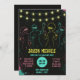 Beginnen Sie das Party mit dieser kühnen und energiegeladenen Glow Dance Party Einladung! Mit seinen neonfarbenen Silhouetten von Tänzern, einem Hintergrund aus schwarzem Spritzer und leuchtenden Saitenlichtern eignet sich das Hotel ideal für Kinder, Jugendliche oder Tweens, die die Nacht beleuchten möchten. Ideal für Geburtstage, Schulveranstaltungen oder jede glühende Feier.