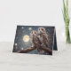 Eulenpaare, die auf einem Baumzweig mit Vollmond und Sternen in dunkelblauem Himmel stehen. Alle Texte können geändert werden.