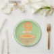 Papierplatte mit einem lächelnden Kantaloupe und einem Geburtstagsalter. Das Alter kann angepasst werden.
