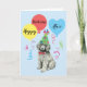Herzlichen Glückwunsch zum Geburtstag mit diesem Design mit einem niedlichen, Party-Hut tragenden Standard Poodle Welpen, umgeben von bunten Ballons und Streamern. Der Name kann leicht geändert werden; klicken Sie einfach auf den Button "Personalisieren".