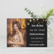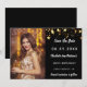 Ein Foto Save the Date für einen 40. Geburtstag (oder jedes Alter) vorne: Fügen Sie ein Foto in vertikaler Größe hinzu. Schwarz, mit goldenen Imitaten verziert. Personalisieren und fügen Sie einen Namen und Details.